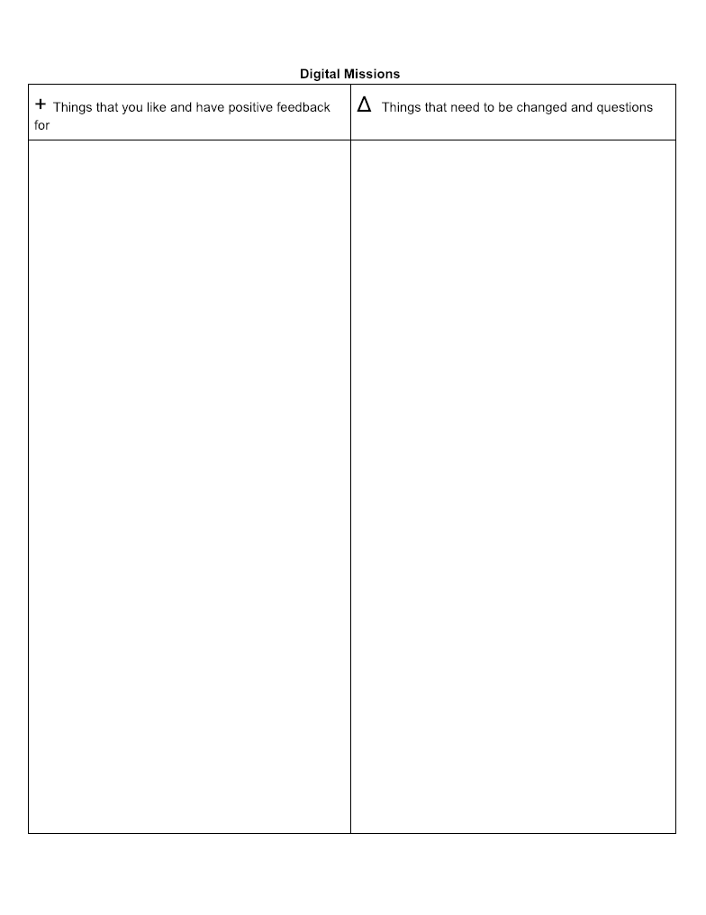 The “pluses” are things the users liked about the site and had a positive experience with, while the “deltas” is where we encourage our users to give us feedback on suggestions or changes, or mention any difficulties on the site. Delta is a Greek letter that stands for growth, which is exactly what we want out of our feedback. Many users are hesitant to critique us, so we allow them to mention things that they like about the site in the plus section and give us suggestions in the delta.