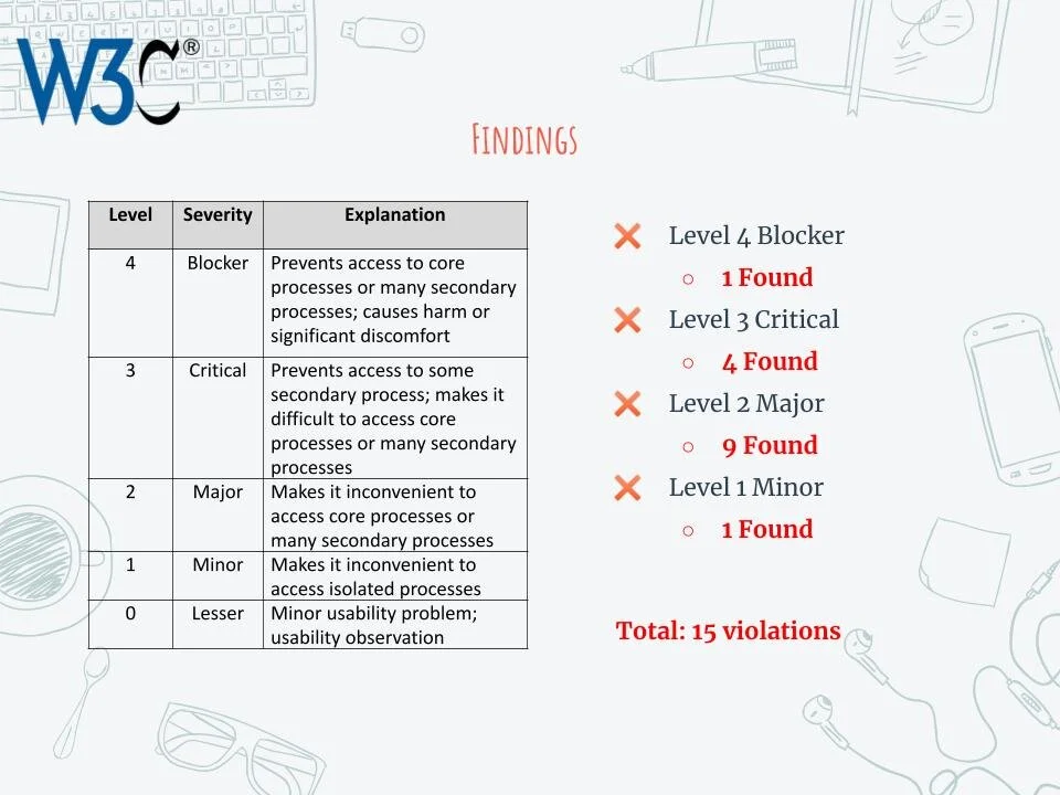 We evaluated the landing page and the checkout process as that is where the most traffic occurred. From those pages there were 15 violations found. We gave more information about these violations to the MSU Tech Store directly so that they could have resources for improvement. To improve the accessibility of the MSU Tech Store website for individuals with disabilities, these initial findings should be considered but to really make a difference on the site, we believe a further review and remediation should be conducted.